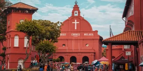 - Rumah Merah adalah bangunan bersejarah ikonik di Melaka dengan arsitektur kolonial Belanda yang khas berwarna merah.