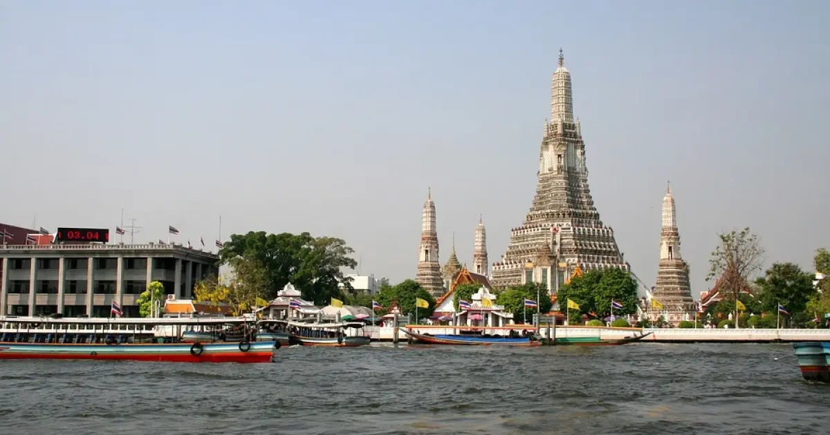- Chaophraya River, yang merupakan sungai utama dan sungai terbesar di thailand dengan perahu menuju Wat Arun (Temple Of Dawn) atau kuil Fajar yang memiliki menara tertinggi.