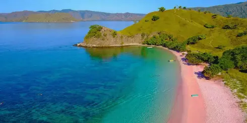 Pink Beach, di Pink beach ini kita dapat bersantai dengan menikmati indahnya pasir pantainya yang berwarna pink sambil bersnorkling.